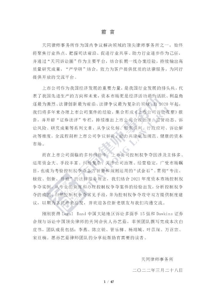 天同律师事务所:上市公司控制权争夺白皮书.pdf