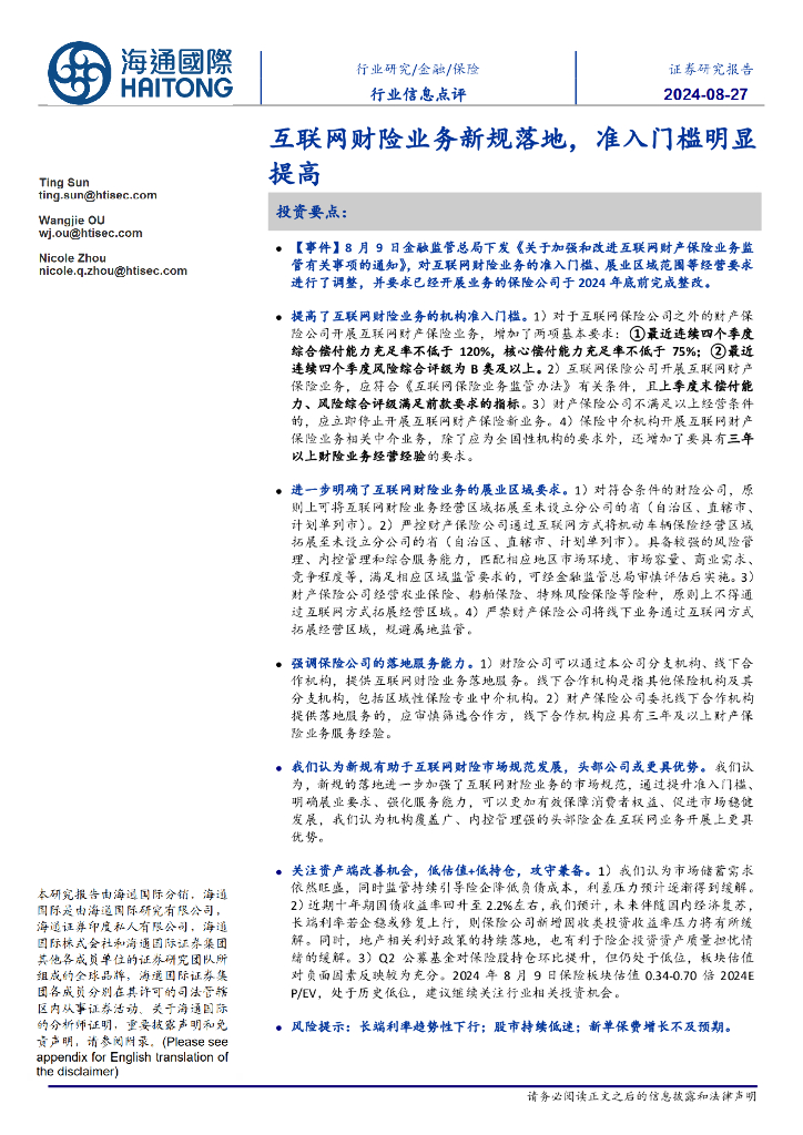 海通国际:保险行业信息点评:互联网财险业务新规落地,准入门槛明显提高.pdf