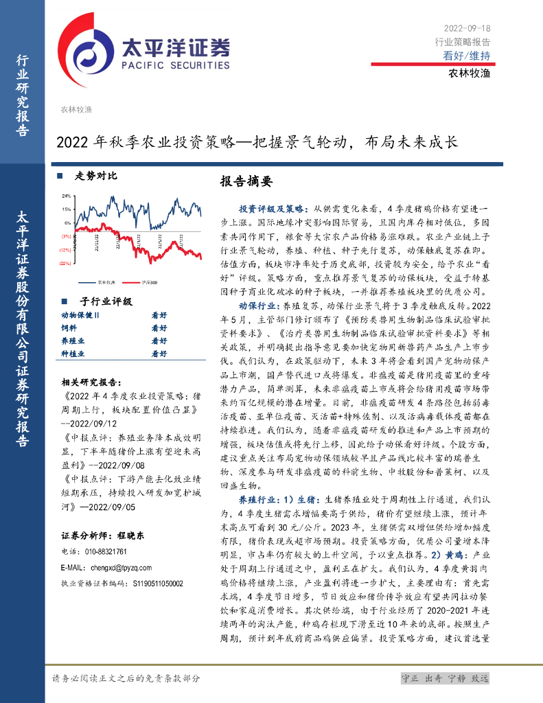 太平洋证券:2022年秋季农业投资策略:把握景气轮动,布局未来成长.pdf