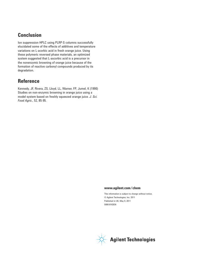 Agilent Non-enzymic Browning in Orange Juice using a Model System 数据手册.pdf