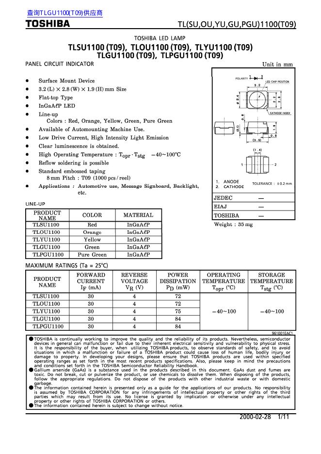 东芝 TLSU1100(T09), TLOU1100(T09), TLYU1100(T09), TLGU1100(T09), TLPGU1100(T09) 数据手册(1).pdf