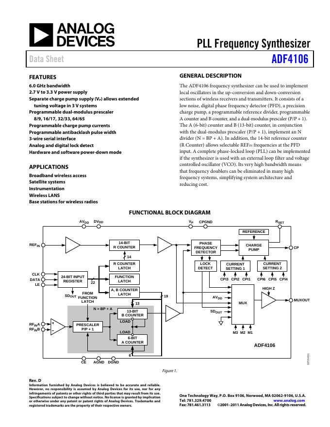 ANALOG DEVICES ADF4106 英文产品 数据手册 Rev D.pdf
