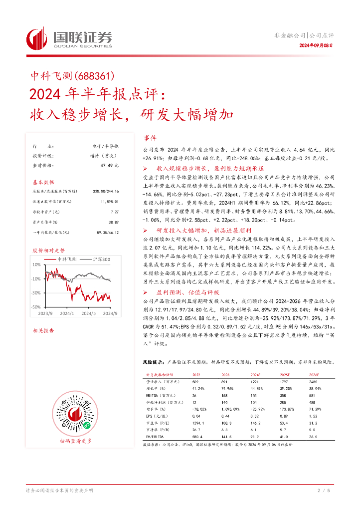 国联证券:中科飞测(688361)-2024年半年报点评:收入稳步增长,研发大幅增加.pdf