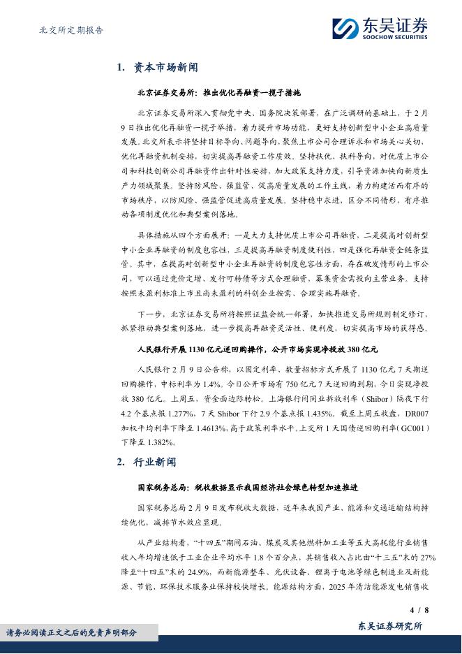 东吴证券:北交所定期报告:北交所推出优化再融资措施,北证50上涨1.36%-260210.pdf