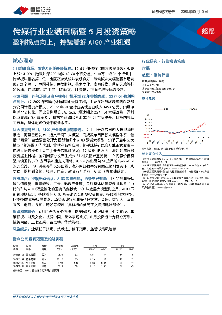 国信证券:传媒行业业绩回顾暨5月投资策略:盈利拐点向上,持续看好AIGC产业机遇.pdf