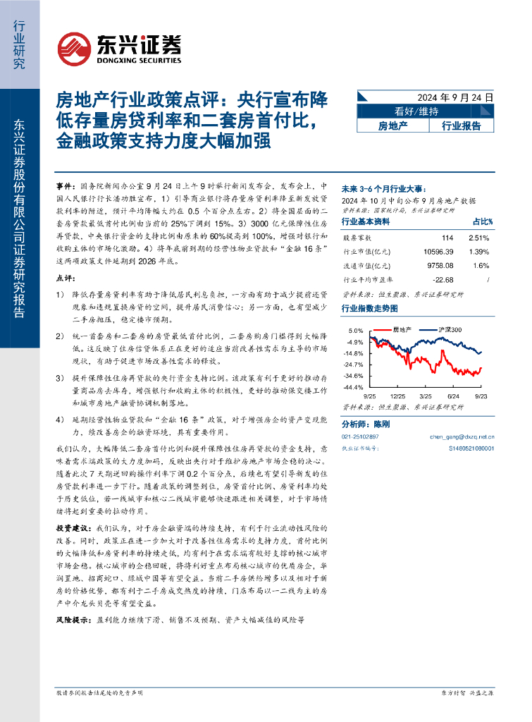 东兴证券:房地产行业政策点评:央行宣布降低存量房贷利率和二套房首付比,金融政策支持力度大幅加强.pdf