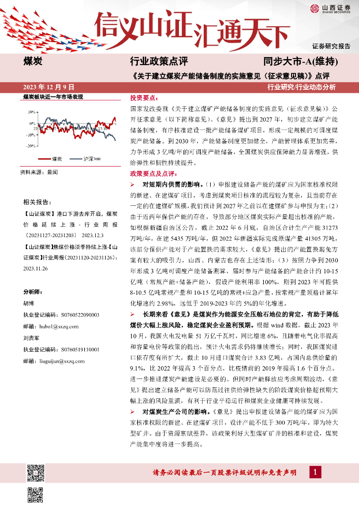山西证券:煤炭行业政策点评:《关于建立煤炭产能储备制度的实施意见(征求意见稿)》点评.pdf