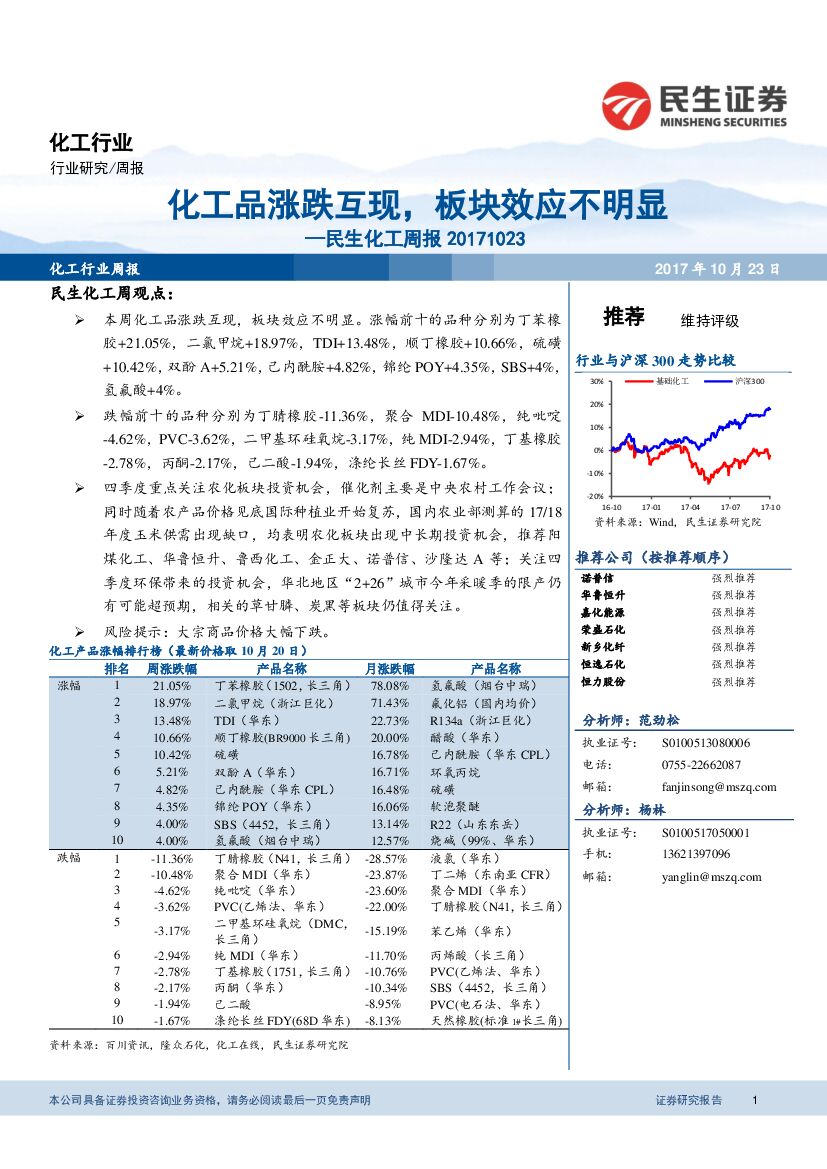 民生证券:民生化工周报:化工品涨跌互现,板块效应不明显.pdf