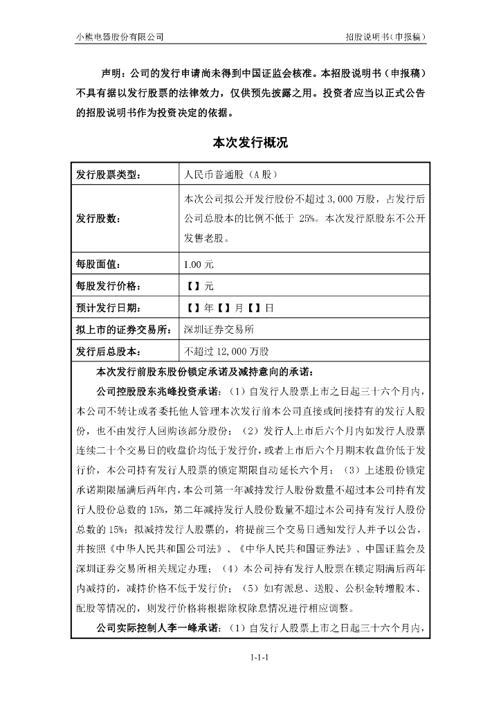 小熊电器股份有限公司深交所主板IPO上市招股说明书.pdf