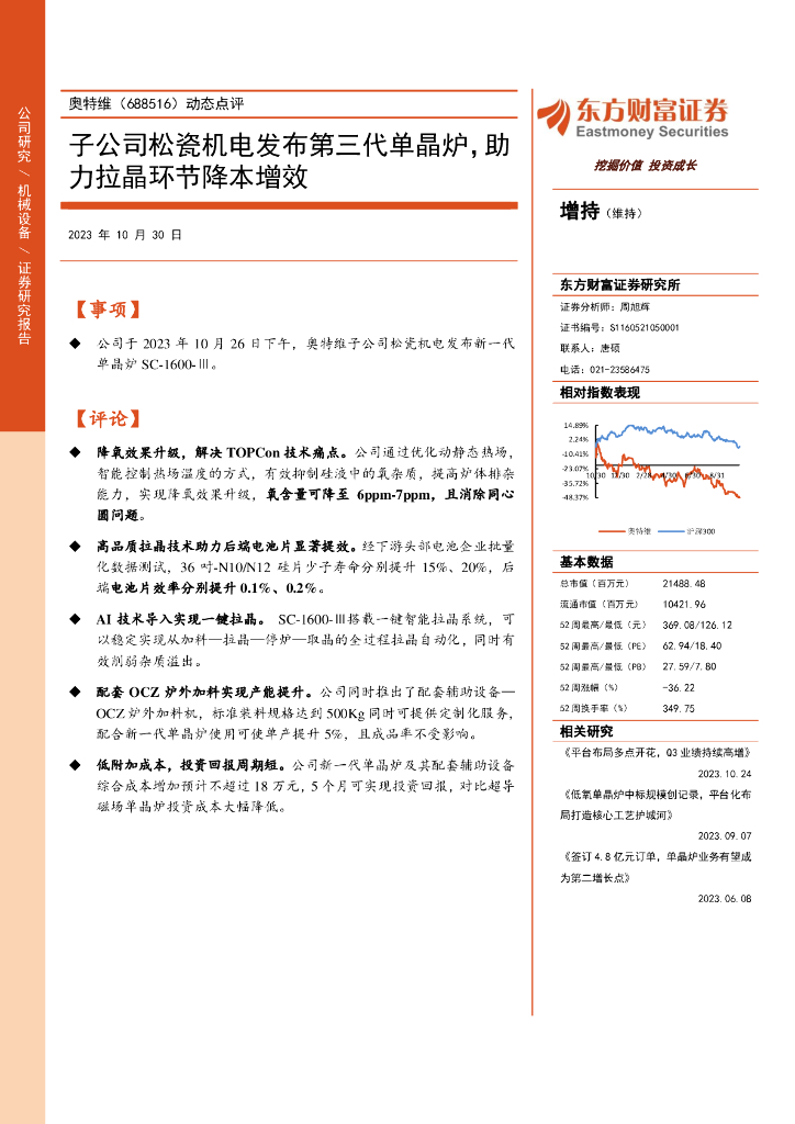 东方财富证券:奥特维(688516)-动态点评:子公司松瓷机电发布第三代单晶炉,助力拉晶环节降本增效.pdf