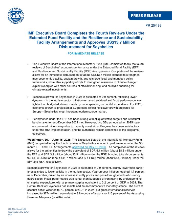 国际货币基金组织:2025年塞舌尔:第四次在延长期限的基金审查工作人员报告(英文版).pdf