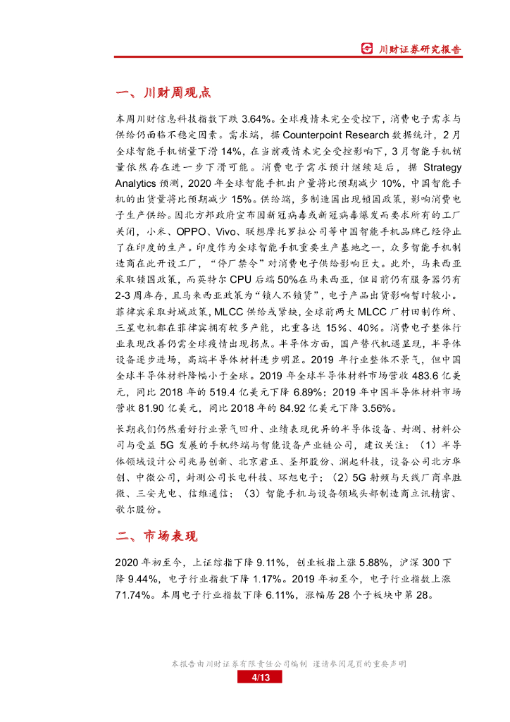 川财证券:电子行业周报:部分厂商生产受限,行业景气关注疫情拐点.pdf