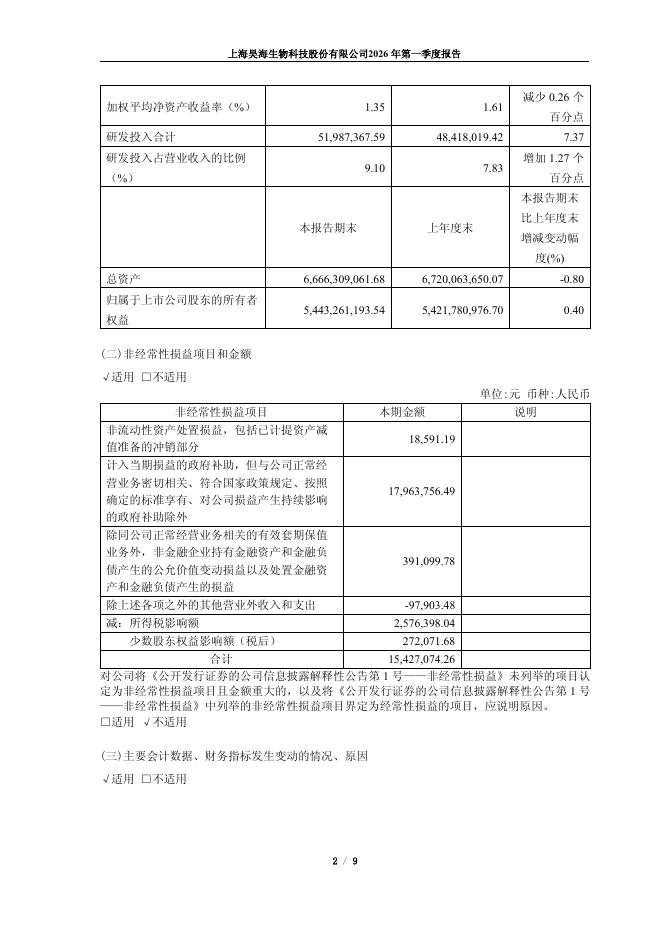 688366-昊海生科:上海昊海生物科技股份有限公司2026年第一季度报告.pdf