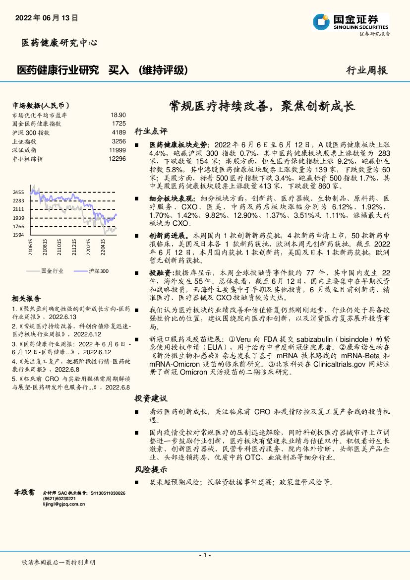 国金证券:医药健康行业研究:常规医疗持续改善,聚焦创新成长.pdf