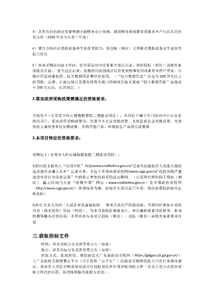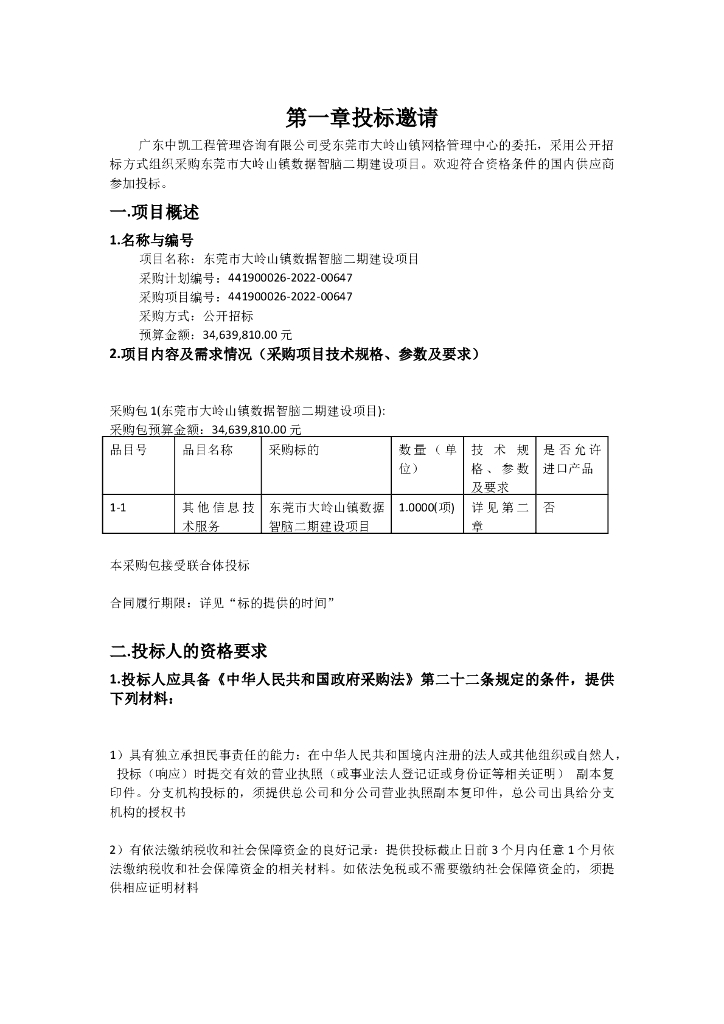 东莞市大岭山镇数据智脑二期建设项目招标文件(2022090901).doc
