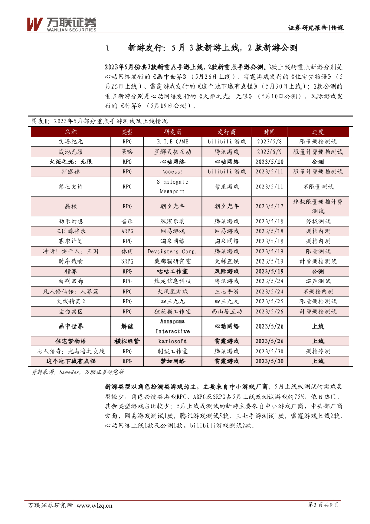 万联证券:传媒行业月报:5月86款版号常态化发放,新游稳定发挥.pdf