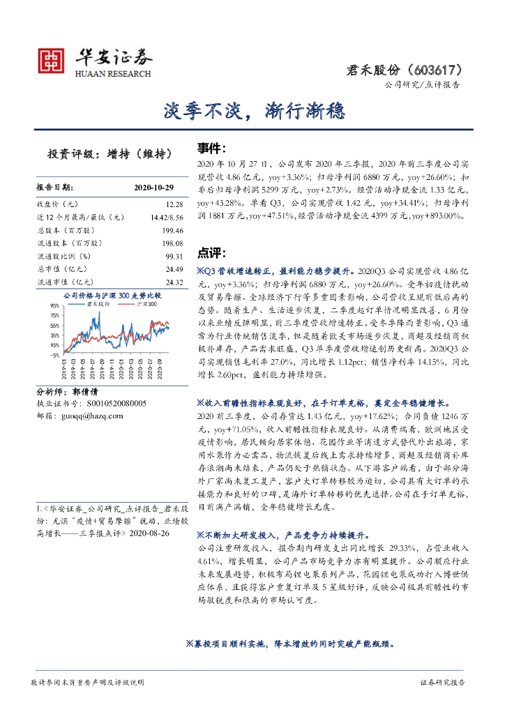 华安证券:君禾股份(603617)-淡季不淡,渐行渐稳.pdf