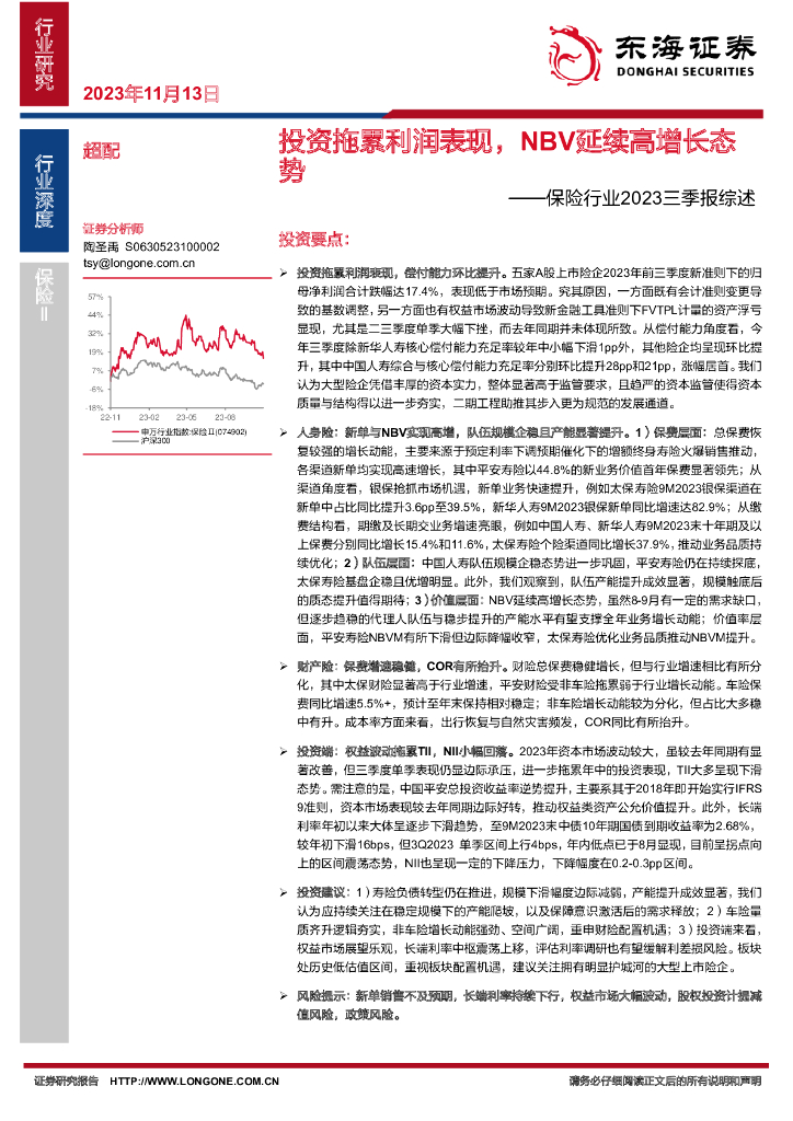 东海证券:保险行业2023三季报综述:投资拖累利润表现,延续高增长态势.pdf