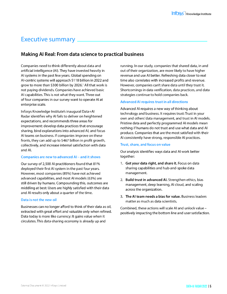印孚瑟斯(Infosys):2022数据人工智能雷达报告:让人工智能成为现实:从数据科学到实际业务(英文版).pdf