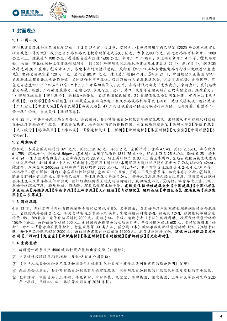 国金证券:非金属建材周观点:继续推荐金股四川路桥,看好四川西藏新疆广西景气度.pdf