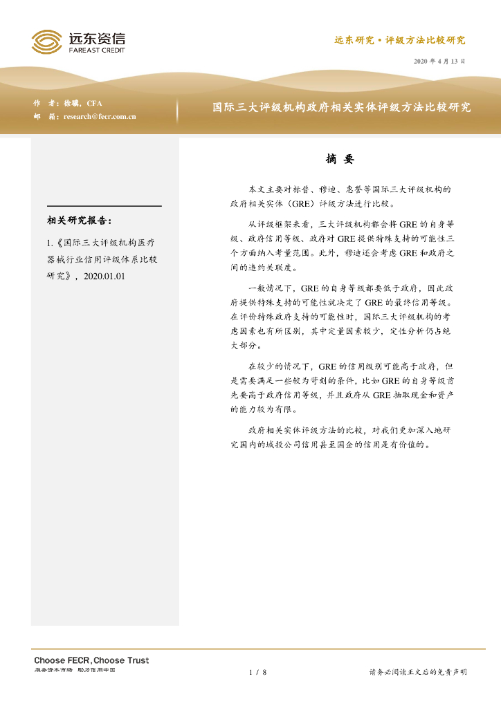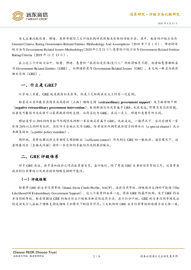 远东资信:国际三大评级机构政府相关实体评级方法比较研究报告.pdf
