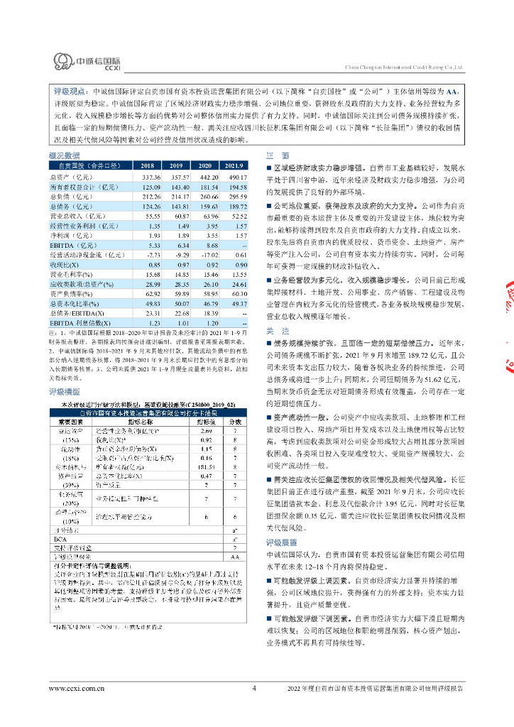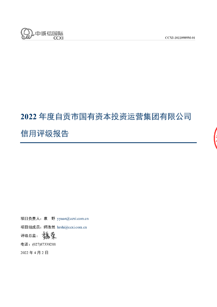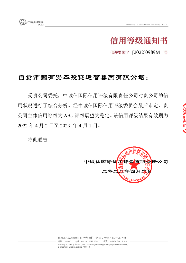 中诚信:2022年度自贡市国有资本投资运营集团有限公司信用评级报告.pdf