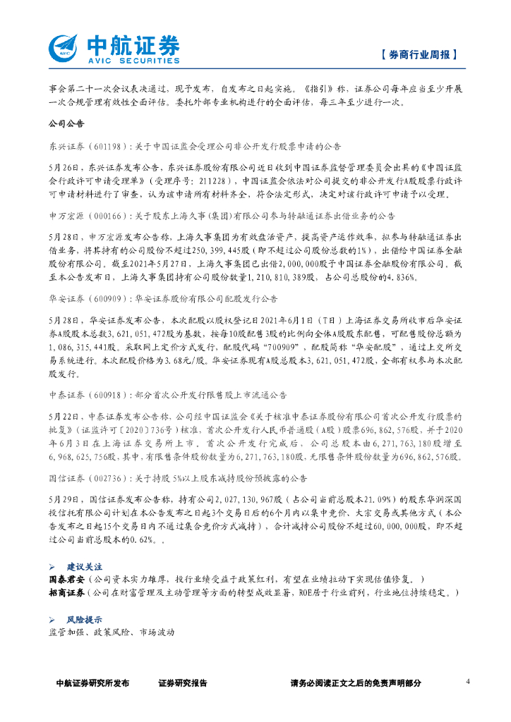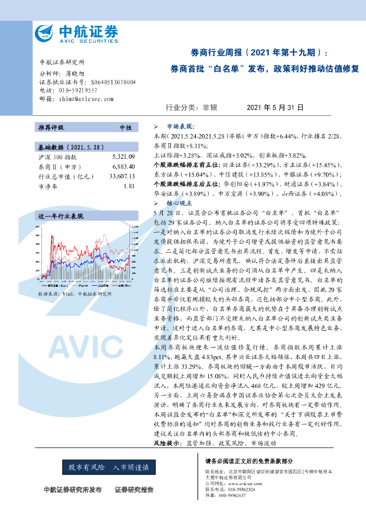 中航证券:券商行业周报(2021年第十九期):券商首批“白名单”发布,政策利好推动估值修复.pdf