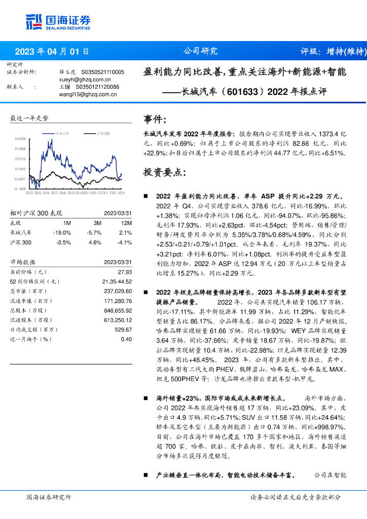 国海证券:长城汽车(601633)-2022年报点评:盈利能力同比改善,重点关注海外+新能源+智能.pdf