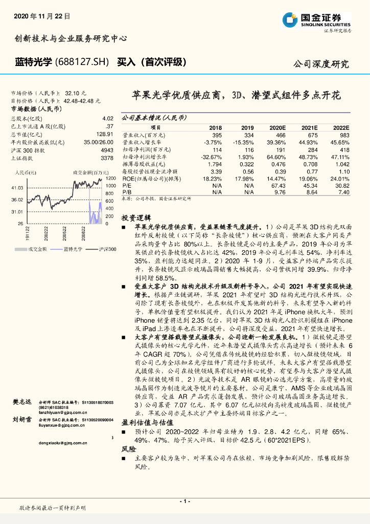 国金证券:蓝特光学(688127)-苹果光学优质供应商,3D、潜望式组件多点开花.pdf