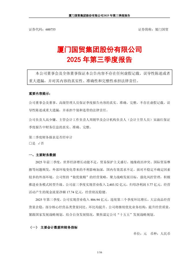 600755-厦门国贸:厦门国贸集团股份有限公司2025年第三季度报告.pdf