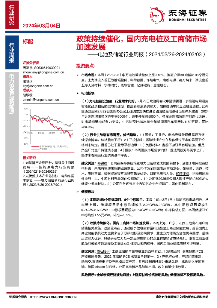 东海证券:电池及储能行业周报:政策持续催化,国内充电桩及工商储市场加速发展.pdf