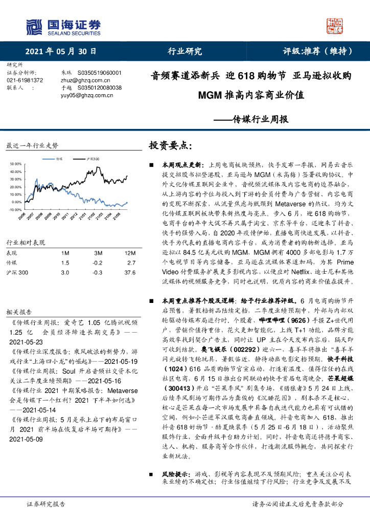 国海证券:传媒行业周报:音频赛道添新兵 迎618购物节 亚马逊拟收购MGM推高内容商业价值.pdf