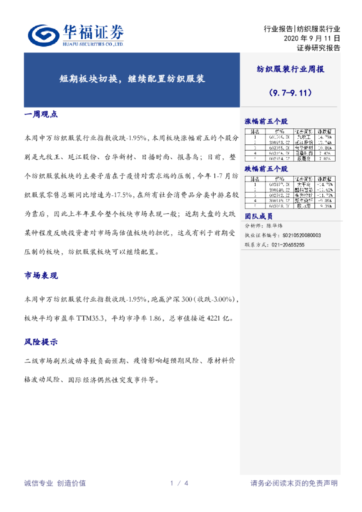 华福证券:纺织服装行业周报:短期板块切换,继续配置纺织服装.pdf