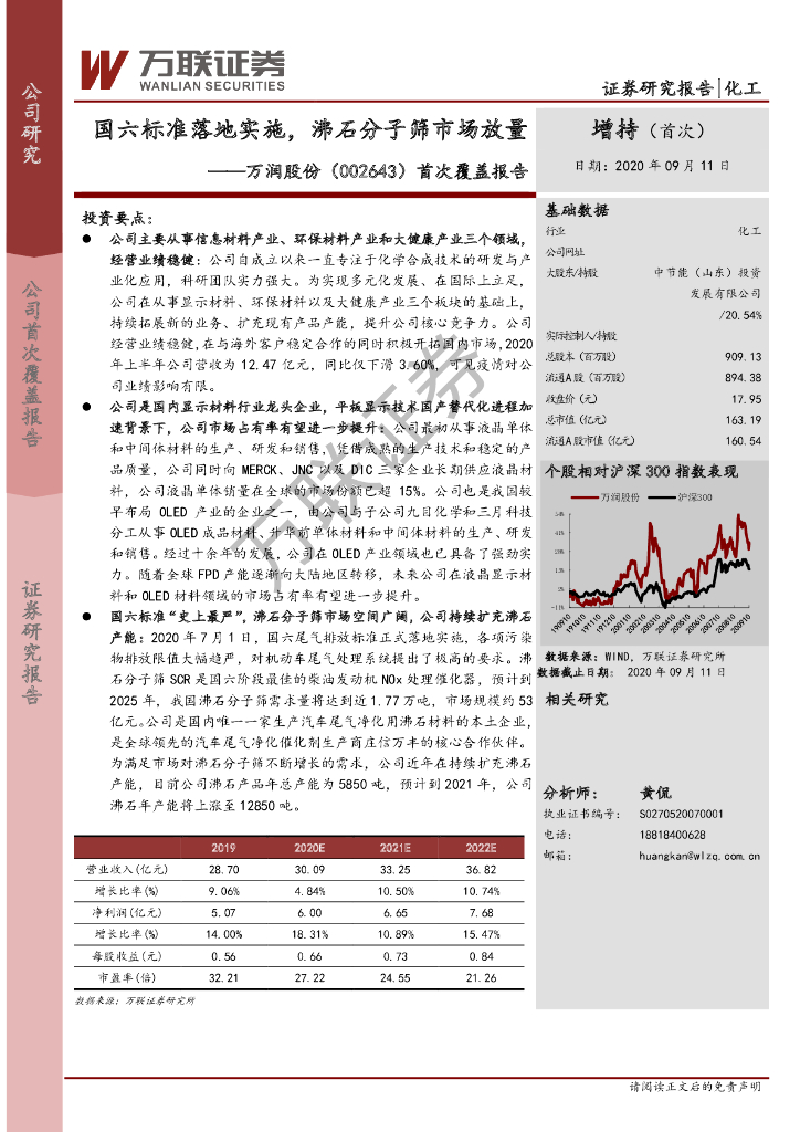 万联证券:万润股份(002643)-首次覆盖报告:国六标准落地实施,沸石分子筛市场放量.pdf