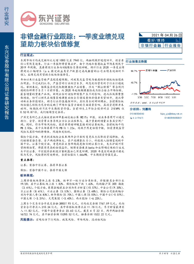东兴证券:非银金融行业跟踪:一季度业绩兑现望助力板块估值修复.pdf
