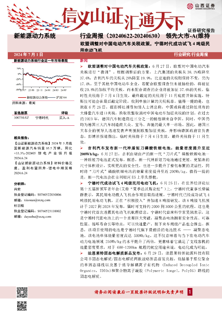 山西证券:新能源动力系统行业周报:欧盟调整对中国电动汽车关税政策,宁德时代成功试飞4吨级民.pdf