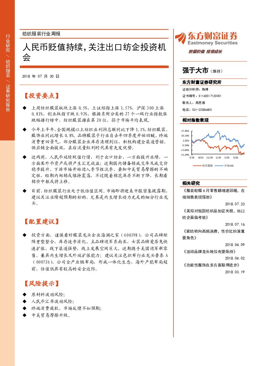 东方财富证券:纺织服装行业周报:人民币贬值持续,关注出口纺企投资机会.pdf