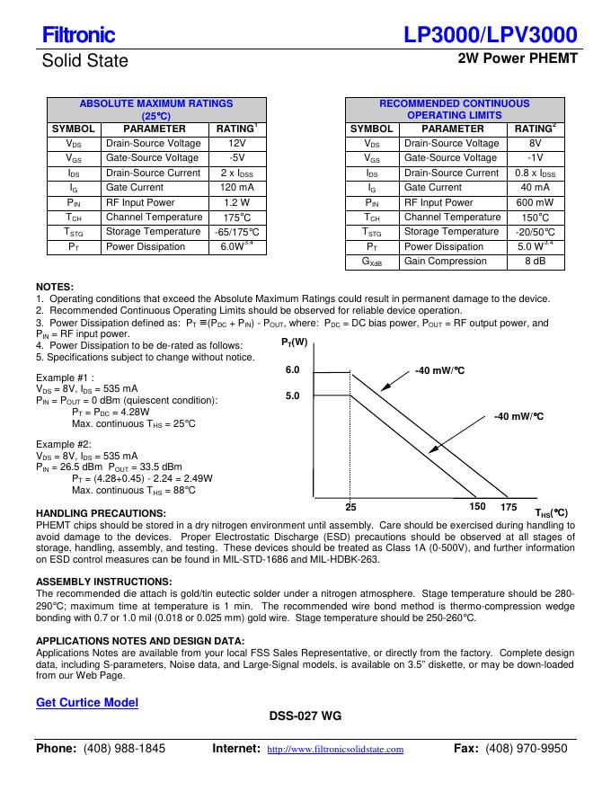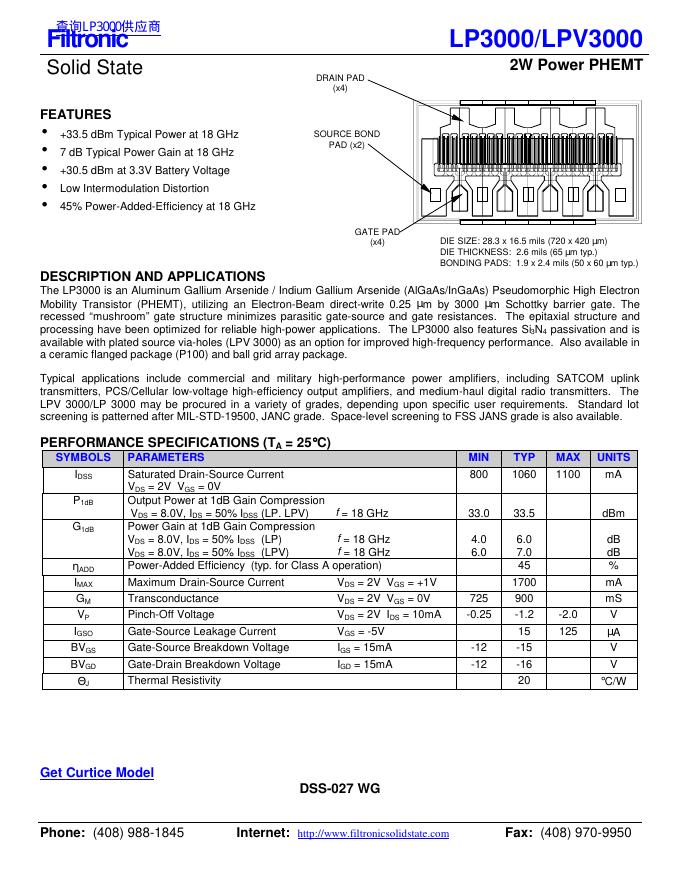 Filtronic LP3000/LPV3000 Solid State 2W Power PHEMT 数据手册.pdf