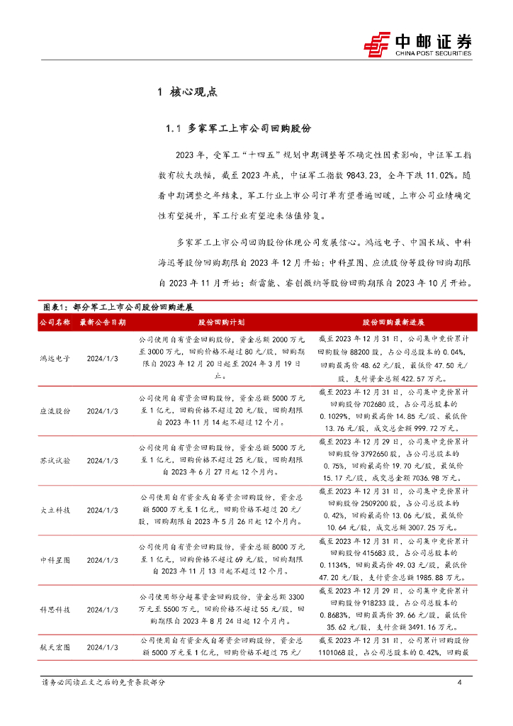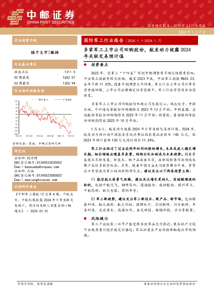 中邮证券:国防军工行业报告:多家军工上市公司回购股份,航发动力披露2024年关联交易预计值.pdf