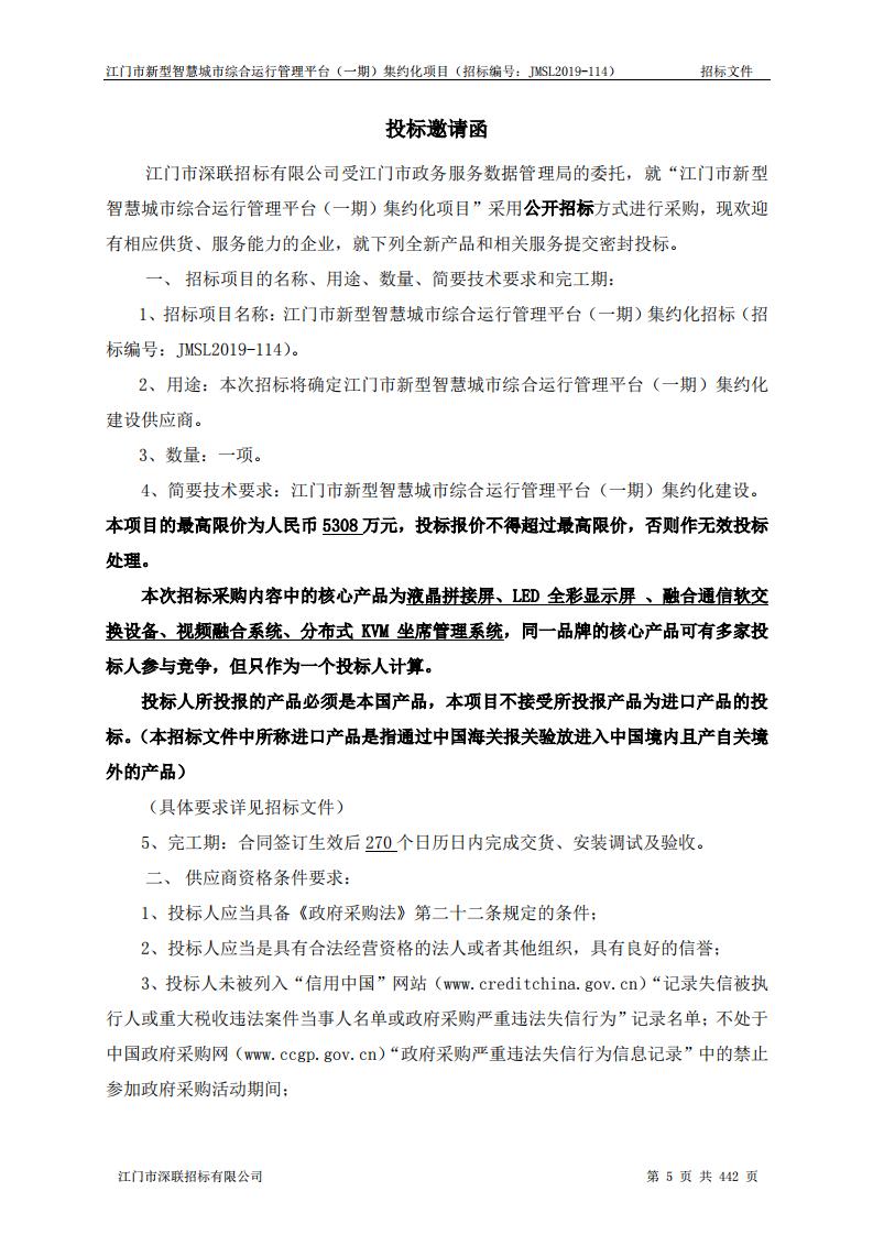 江门市新型智慧城市综合运行管理平台(一期)集约化项目招标文件.pdf