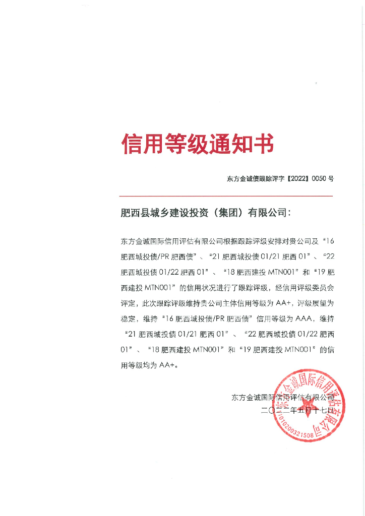 东方金诚:肥西县城乡建设投资(集团)有限公司主体及相关债项2022年度跟踪评级报告.pdf