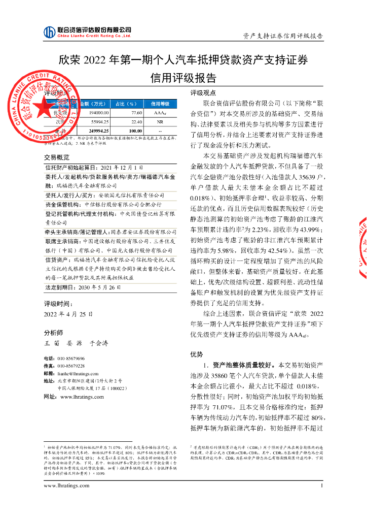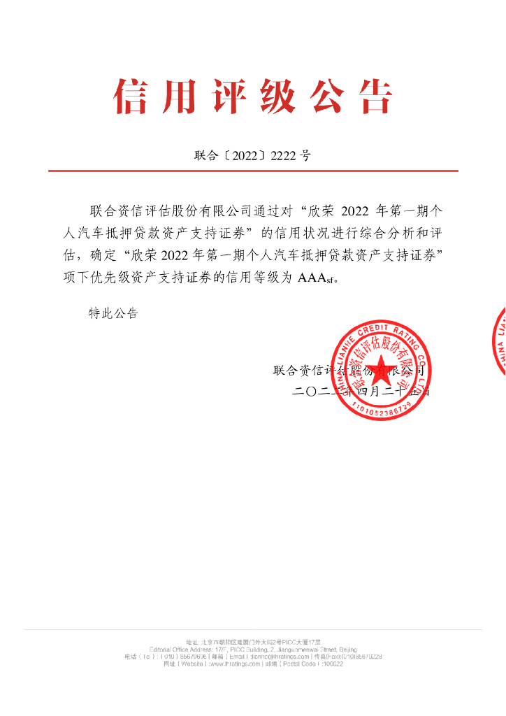 联合资信:欣荣2022年第一期个人汽车抵押贷款资产支持证券信用评级报告-联合资信.pdf