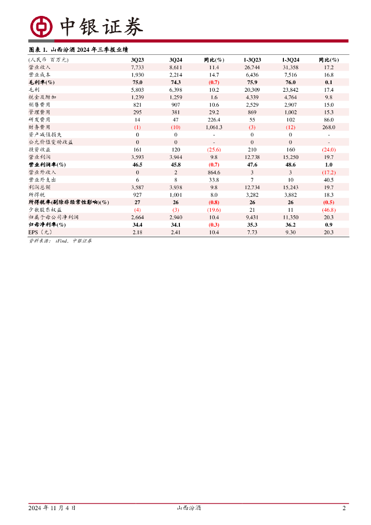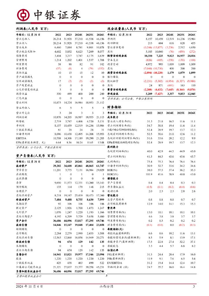 中银证券:山西汾酒(600809)-3季度公司业绩稳健增长,现金流表现优异.pdf