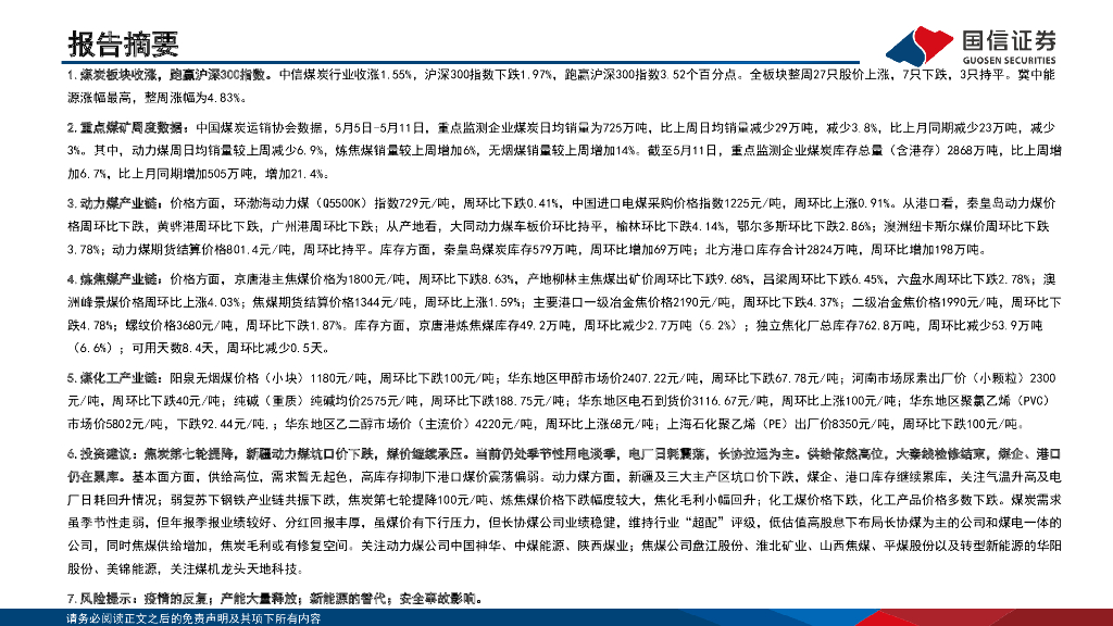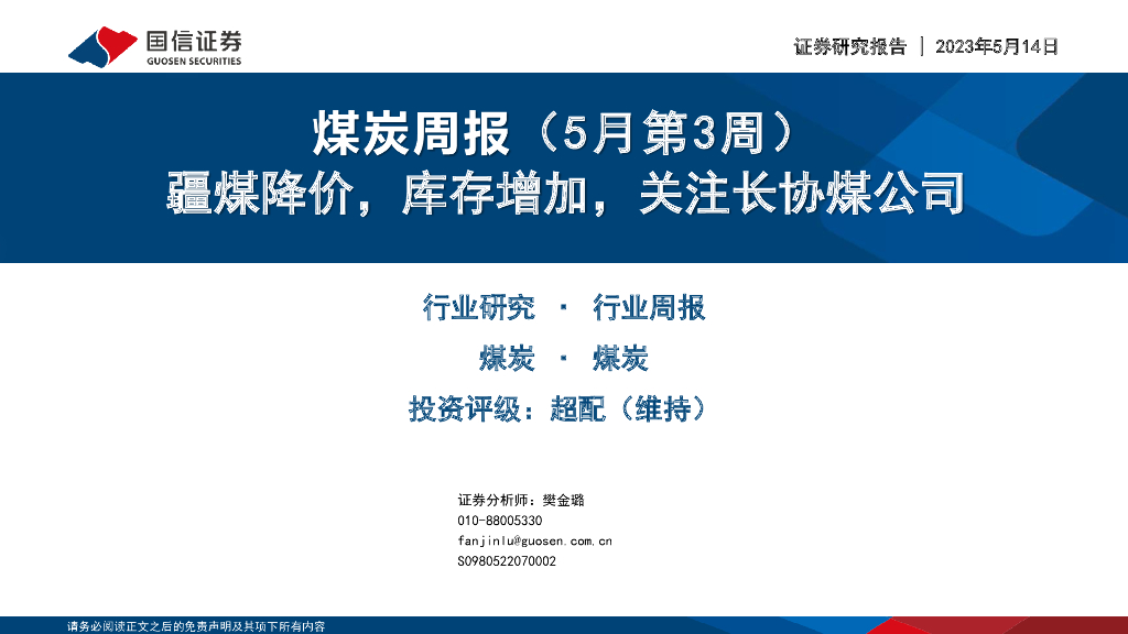 国信证券:煤炭周报(5月第3周):疆煤降价,库存增加,关注长协煤公司.pdf