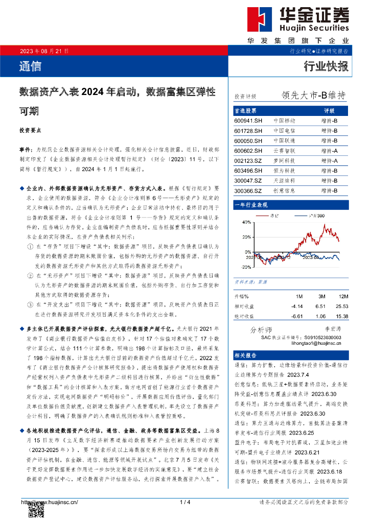 华金证券:通信行业快报:数据资产入表2024年启动,数据富集区弹性可期.pdf