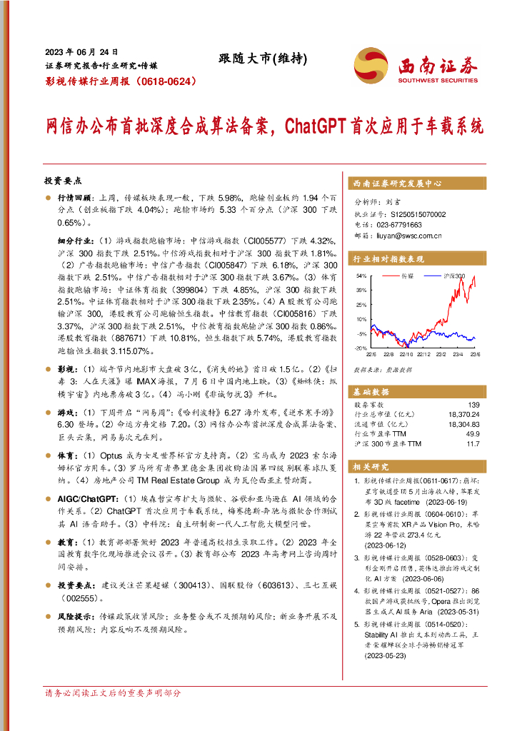 西南证券:影视传媒行业周报:网信办公布首批深度合成算法备案,ChatGPT首次应用于车载系统.pdf