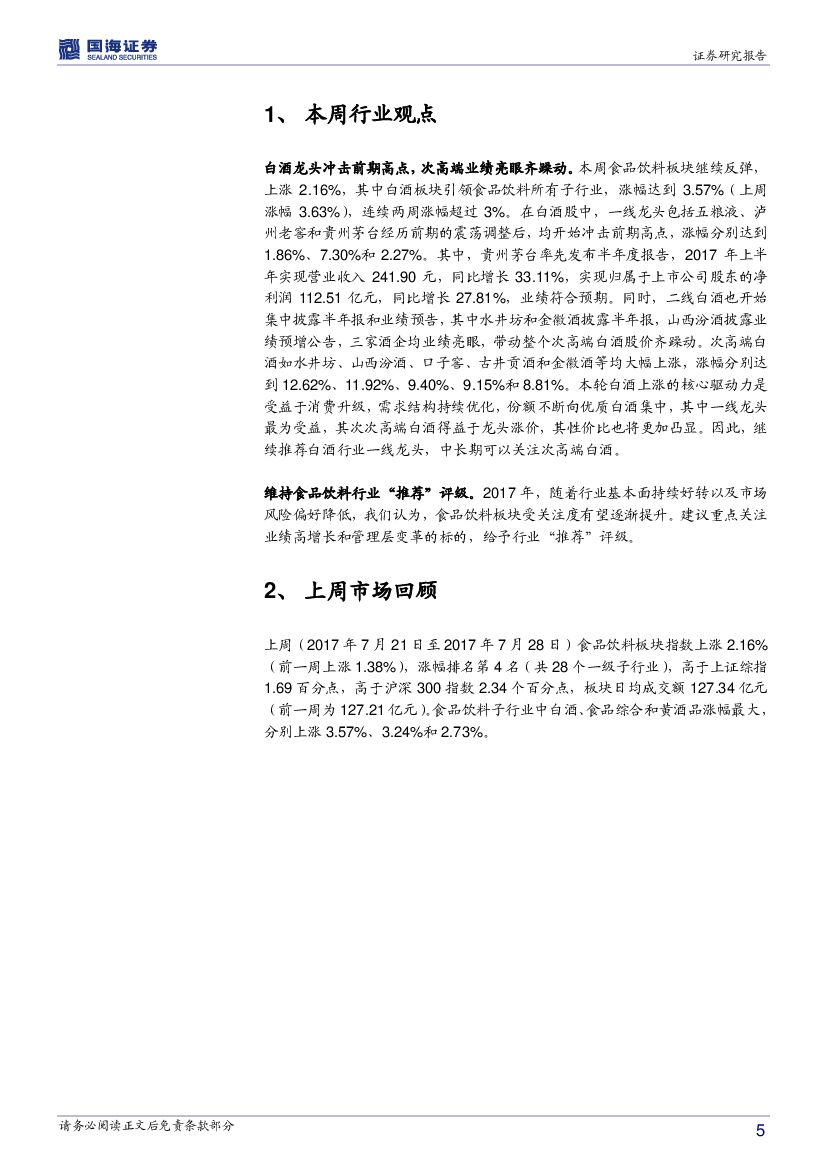 国海证券:食品饮料行业周报:白酒龙头冲击前期高点,次高端业绩亮眼齐躁动.pdf