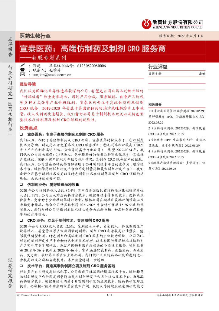 浙商证券:医药生物行业新股专题系列:宣泰医药:高端仿制药及制剂CRO服务商.pdf