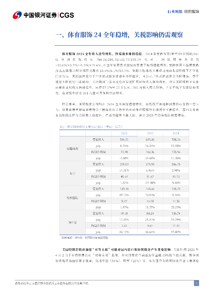中国银河:纺织服饰行业周报:体育服饰24全年稳增,关税影响仍需观察.pdf