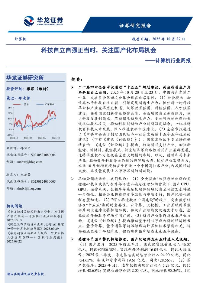 华龙证券:计算机行业周报:科技自立自强正当时,关注国产化布局机会.pdf